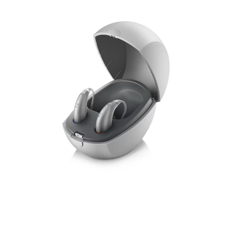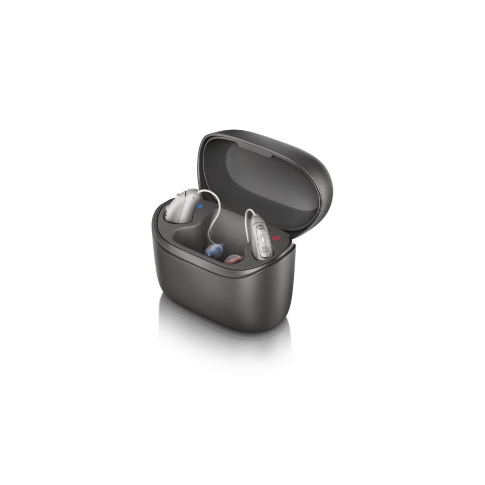 Stride™ V-PR naše je punjivo zaušno slušno pomagalo s izravnim povezivanjem (dolazi s kutijicom za punjenje)